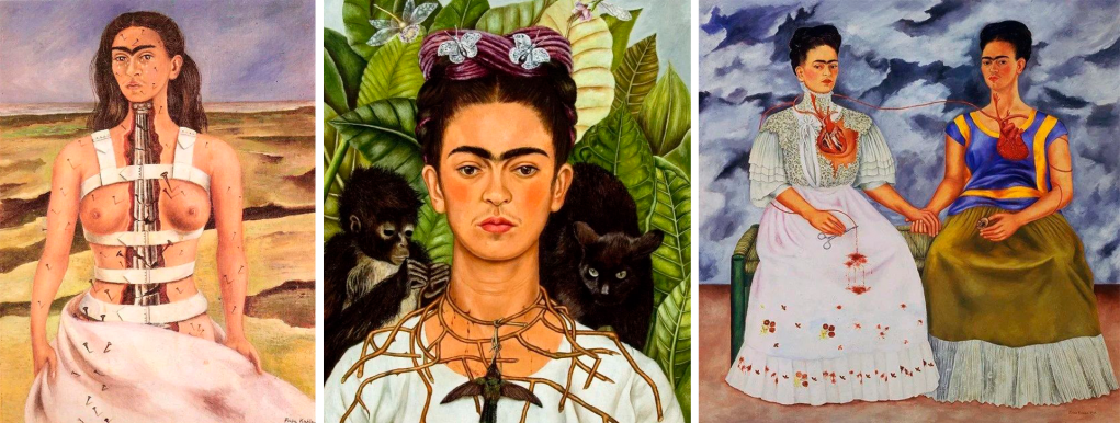 La mitad de los cuadros pintados por Frida Kahlo fueron autorretratos, ella decía que pintaba sobre lo que conoce, básicamente se pintaba a si misma y su tristeza. En el momento que Frida estaba viva ella negó que su estilo fuera surrealista y que sus obras estuviesen inspiradas en sueños por el contrario afirmaba que pintaba lo que vivía, pintaba su vida.