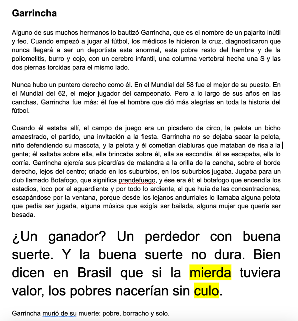 Galeano menciona la palabra ‘sentipensante’, un término que utiliza para describir a las personas que usan tanto sus emociones como su razón al pensar o tomar decisiones. Y justamente eso fue lo que me pasó con «El fútbol a sol y a sombra», un libro que leí en 1997, año en que el Club Atlético Peñarol se consagró campeón uruguayo por quinto año consecutivo. Mi emoción por el fútbol estaba completamente desbordada, y claramente no solo pensé con la cabeza, sino también con el corazón. Galeano encontró esta palabra hablando con pescadores en Colombia, quienes la usaban para describir a alguien que entiende las cosas sintiendo y pensando al mismo tiempo.
