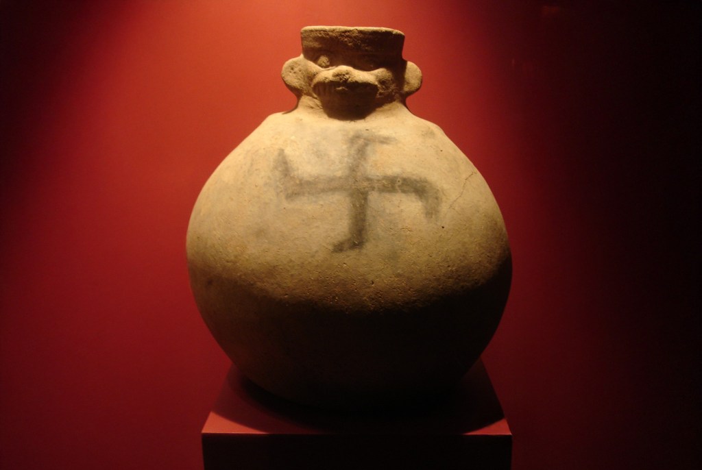 En el Perú precolombino, la esvástica aparece representada en la cerámica de culturas como la mochica y chimú, asociada al movimiento y los ciclos de la vida. Walter Alva, arqueólogo y descubridor del Señor de Sipán, explica que este símbolo representaba el dinamismo de los ciclos vitales, reflejando la conexión de los antiguos peruanos con la naturaleza. En el museo Huaca Rajada, se exhiben piezas donde se puede observar este símbolo geométrico, vinculado también al vuelo de las aves. A pesar de su relevancia simbólica, la esvástica peruana, como en otras culturas, perdió visibilidad tras la apropiación nazi, quedando relegada al ámbito académico y arqueológico.
